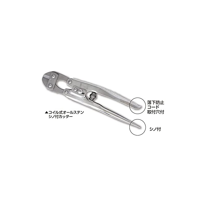 - Specifications/Cutting Capacity: Mild steel wire 0.16 inch (4 mm), Drop prevention cord mounting hole