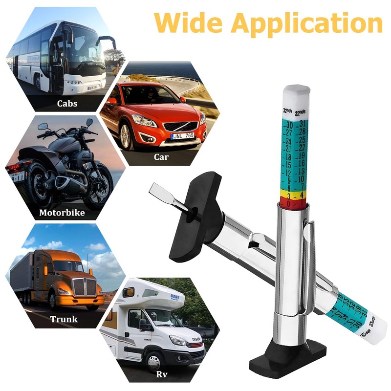 - Widely Applicable: The product is suitable for most of the vehicles on the market, such as cars, SUVs, vans, trucks, motorcycles, SUVs, MPVs and so on. With a size of 3.43 x 1.02 inches, it can meet your tire depth measurement needs in daily vehicle maintenance or professional repair and inspection, and is a practical tool for vehicle maintenance.