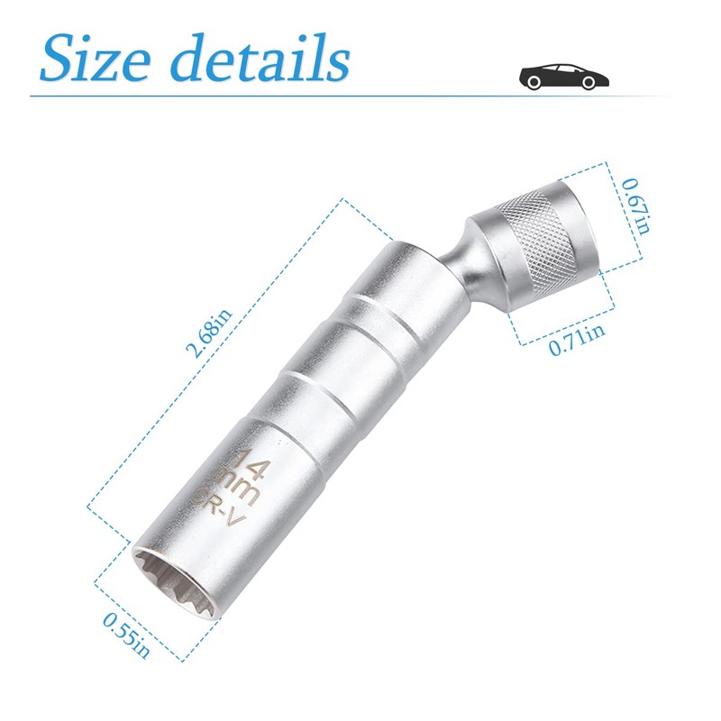 - 【Convenient to Use】: Thin-walled design, comfortable in hand, easy to grip, no hand injury. Outer surface is completely polished, very easy and quick to clean up. Spark plug socket can be 360° rotated flexibly to help you finish the work in narrow area quickly, very convenient and labor-saving.