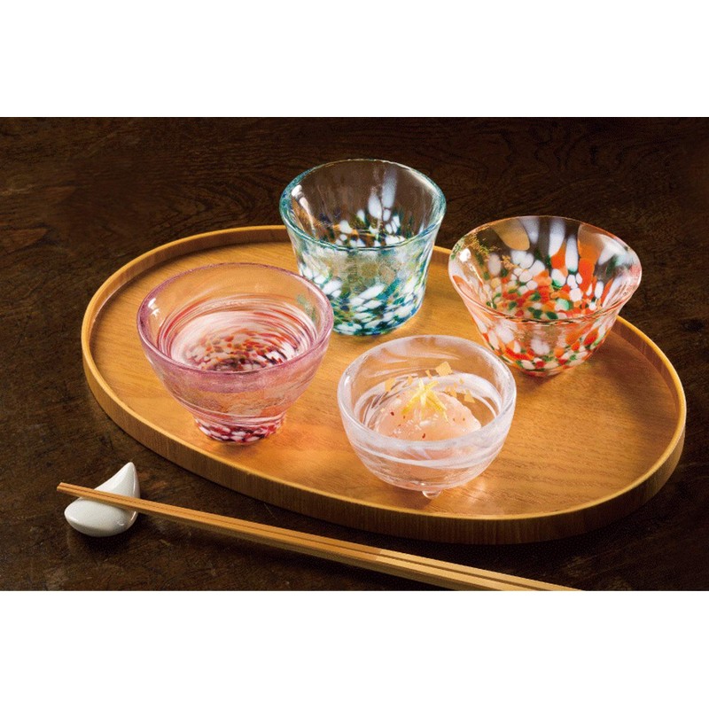 Tsugaru Biidoro, Handcrafted Glass Sake Cups, Set of 4, Four Seasons