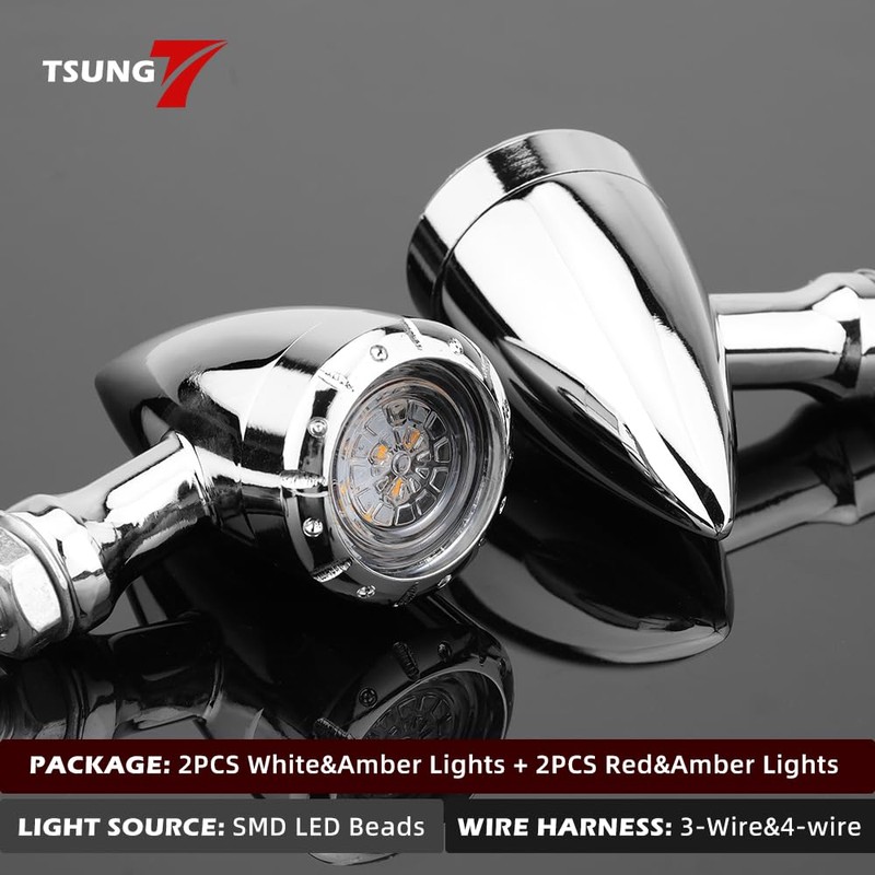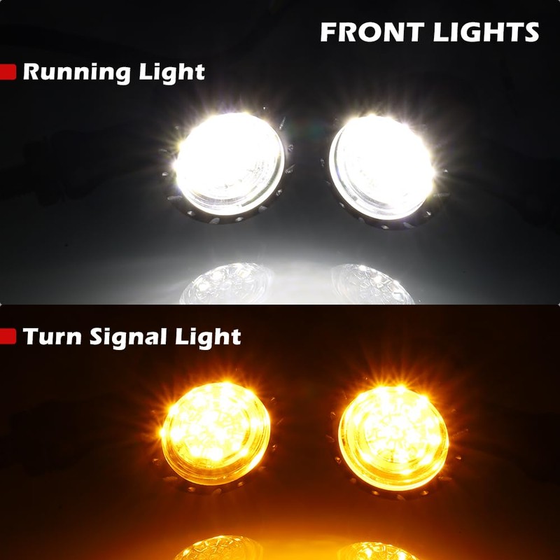 - ▶ULTRA BRIGHT - Each turn signal light is equipped with 15 high quality SMD Dual-color LED chips, super bright, much brighter than halogen bulbs. Improve visibility and keep riding safely.