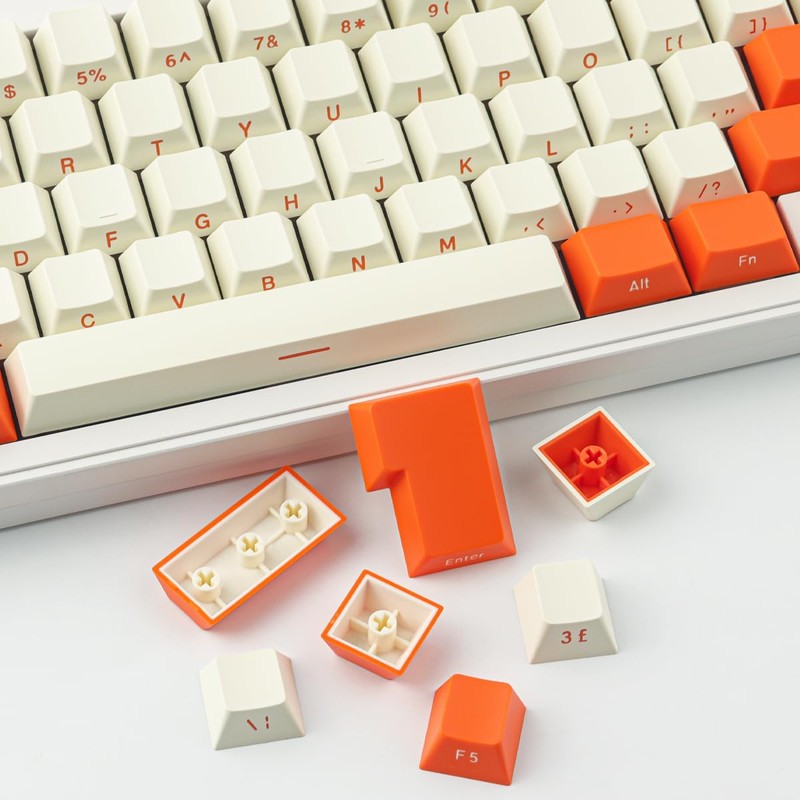 Tsungup Custom Keycaps 145 Keys Keyboard Keycaps ABS ISO Keycaps Side Printed Keycap Set fit 60 percent Keyboard,Compatible Cherry MX Keys for ISO Layout Mechanical Keyboard(Orange&Cream)