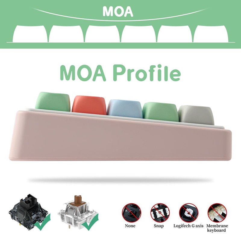 - 【MOA Profile Keycaps】:The keycap designed with the MOA profile,the keycap looks very beautiful, and increases the contact surface between the keycap and the fingers, you won't feel fatigued when using it for long periods of time during work or gaming.