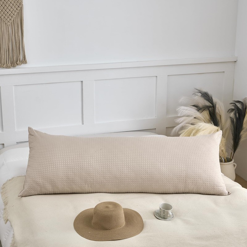 TSUTOMI Soft Waffle Weave Body Pillowcase 20" x 54", No Insert, Breathable & Skin-Friendly Body Pillow Sham, Decorative Waffle Weave Body Pillow Cover, Cream