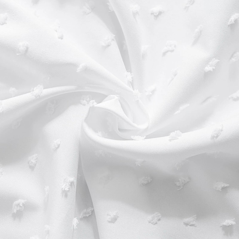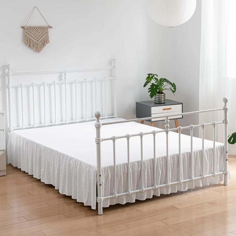 Tufted Dot Embroidery Design: Charming polka dots of tufted texture are scattered across this white bed skirt, hand tufted dot texture in a linear polka dot pattern,White full bed skirt comes with a platform that goes between the maTSTress and box spring to keep it in place, ruffled around 3 sides looking simple and stylish,Beauty and function are perfectly integrated with this tufted dot full bed skirt.