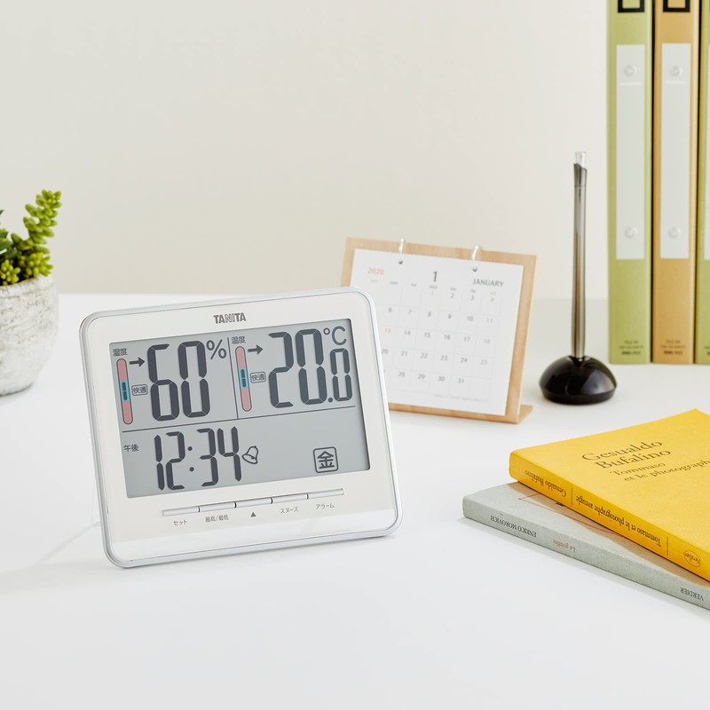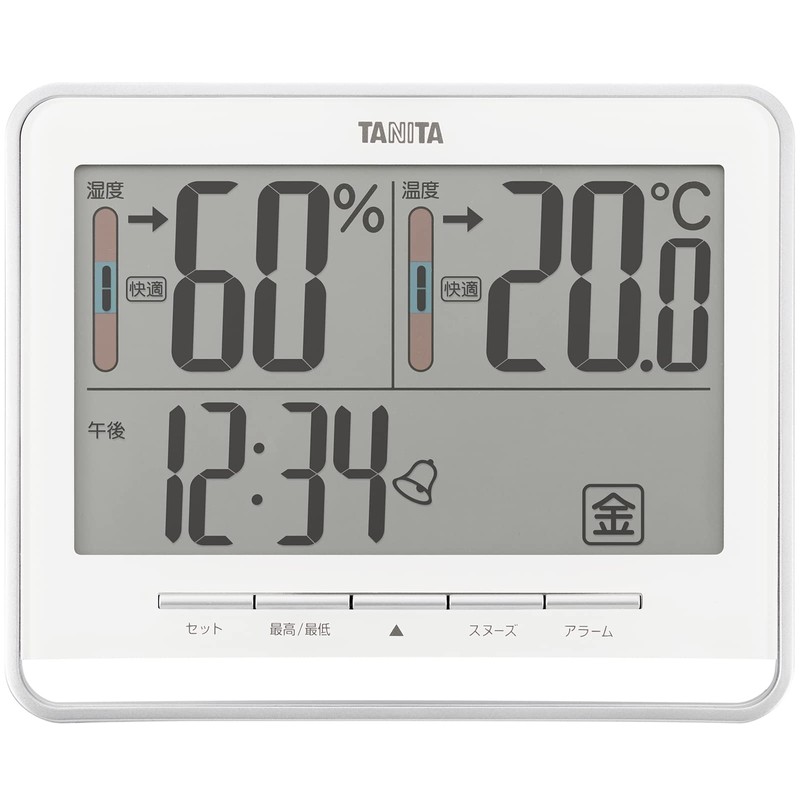 タニタ 時計 デジタル 大画面 ホワイト 温度 湿度 快適レベル 表示 カレンダー アラーム スヌーズ 機能 置き時計 掛け時計 両用 TT-538 WH