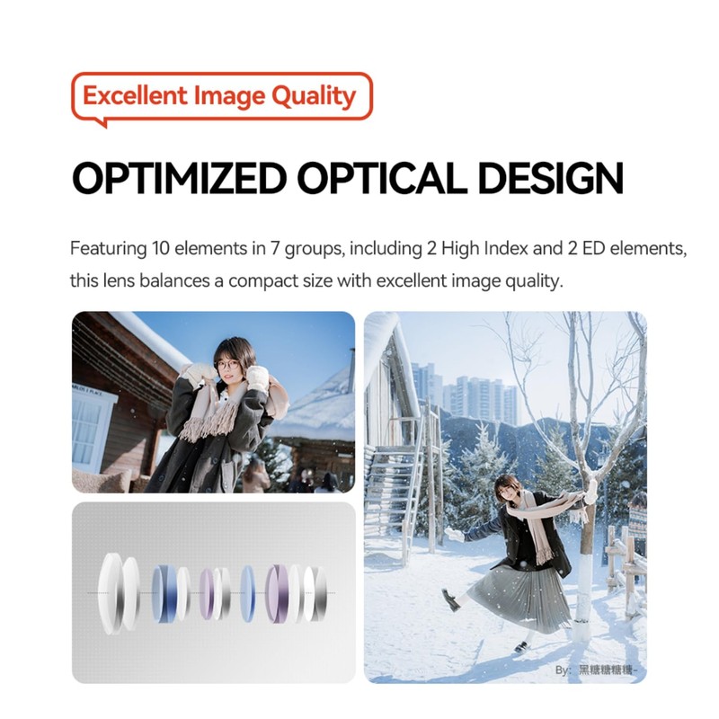 - Lightweight design for comfortable, long-term photography: Weighing only 176 g, this lens is designed for effortless carrying without sacrificing functionality. Its compact size (60mm x 49mm) makes it perfect for travel photography, everyday shots and longer sessions, allowing you to capture the moment comfortably.