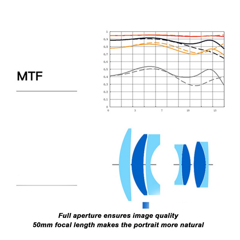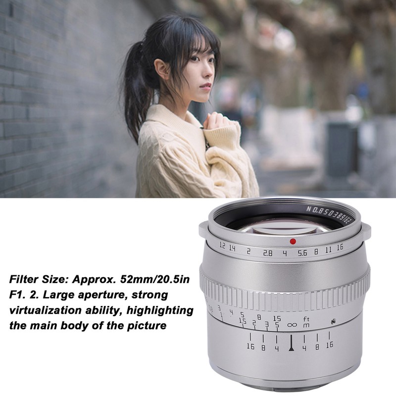 1、F1. 2 Large Aperture: the large aperture has strong virtual ability, which can more highlight the main body of the picture, make the picture form a sense of virtual and real levels, make the photos full of poetry and enhance the artistic appeal. 2、Guaranteed Picture Quality: When the aperture is fully open, the image quality is guaranteed and the sharpness in focus will not decrease, F1.2 is a good balance between the pursuit of large aperture and the pursuit of image quality. 3、Nature Portrait: In the 50mm focal length, the portrait is more natural. The 50mm APS C frame is equivalent to the 75mm full frame. The portrait under this focal section is more natural. There is no need to worry about flattening the facial features or making it too three dimensional. 4、Multifunctional: Although the lens is a portrait lens, the lens is not limited to portraits. This 50mm focal length is a good focal length for taking sketches. With the blessing of a large aperture, the lens greatly expands the function. 5、Manual Lens: The manual lens is an elegant symbol of slow style. Under manual focusing, the process of the world from blur to clarity can give you a thrilling and pleasant experience.