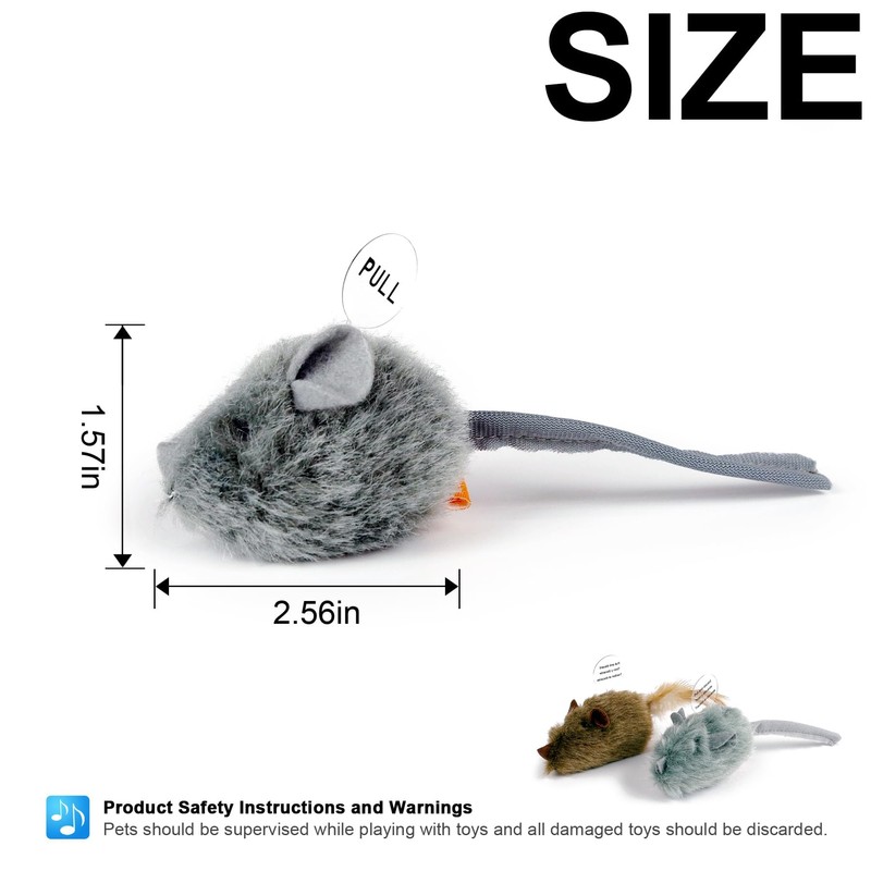 • 【Simple Usage】Remove the plastic cord of the cat hunt toy prior to use to activate the mouse toy makes realistic sound. Throw the kitty toys down to the ground, fueling your cat's desire to chase.