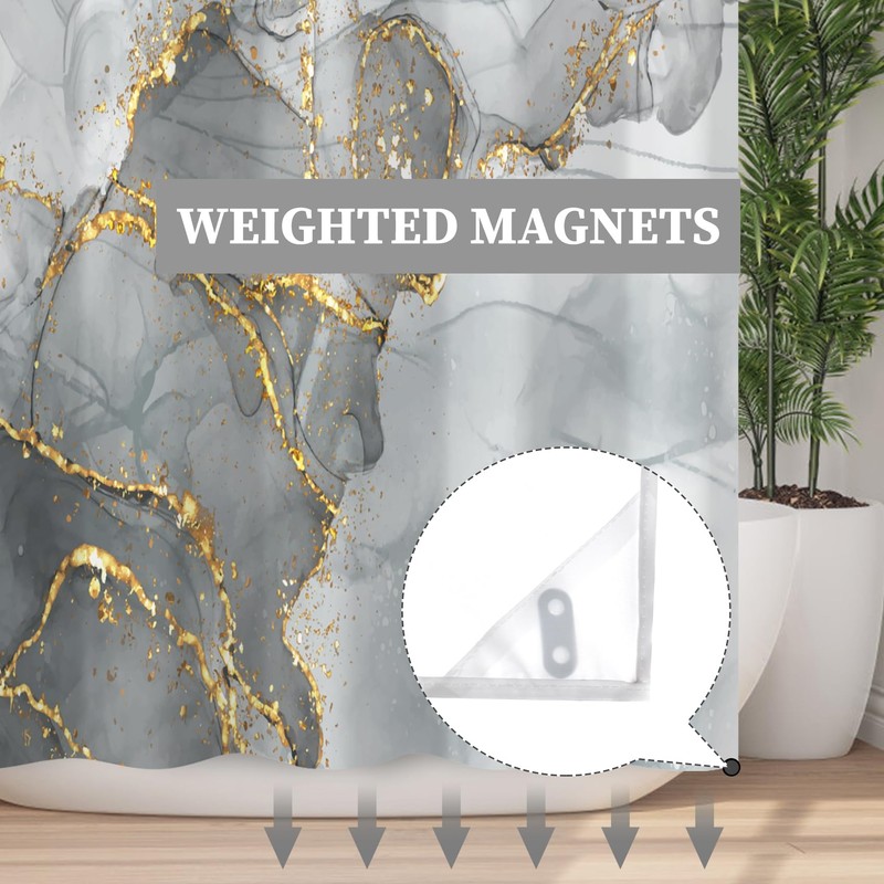 Ttincceer Hook-less Shower Curtain with Snap in Fabric Liners Grey Gold Marble No Hooks Shower Curtains Waterproof Luxury Double Layer Bathroom Curtain with See Through Top Window 71x74inch