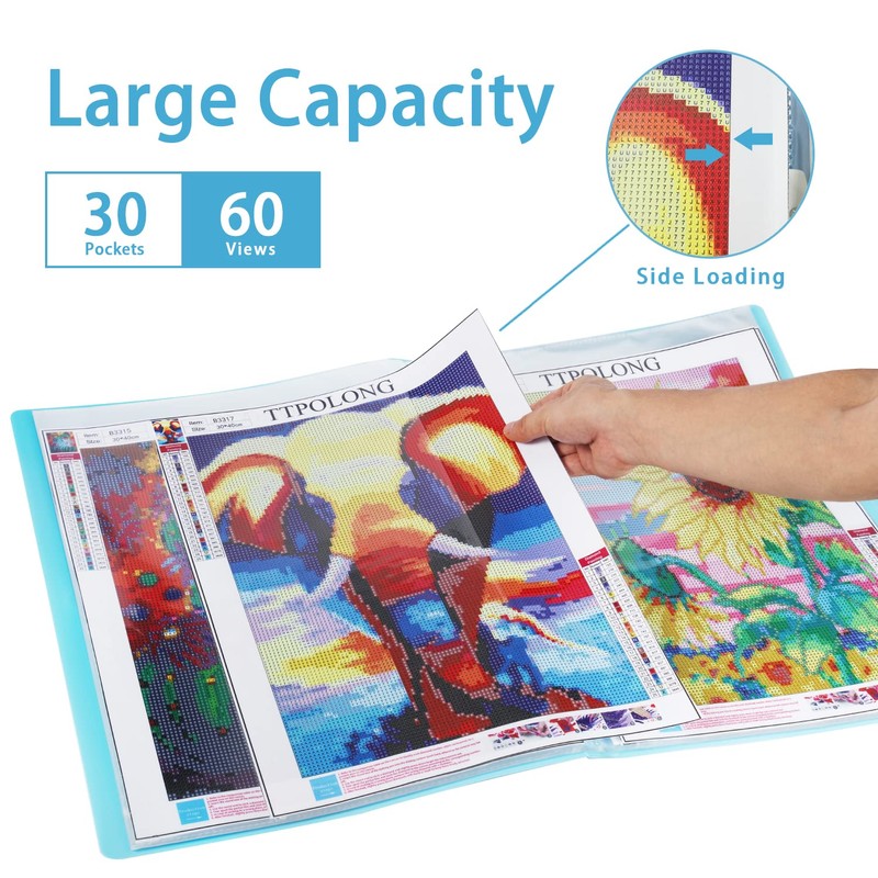 - Large Capacity:TTPOLONG This diamond art portfolio book has 30 sleeves and 60 views. Transparent sleeve allows you present your diamond painting conveniently.