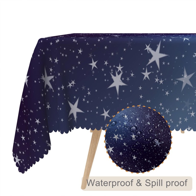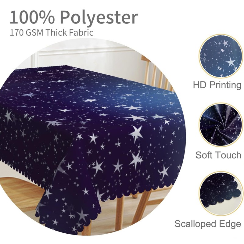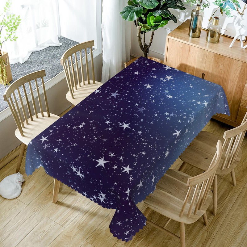 TTQYFNM 54x108inches Dark Blue Starry Night Sky Tablecloth Galaxy Stars Universe Space Themed Table Cloth Washable and Reusable Durable Fabric Table Cover for Kitchen Dining Room Buffet Party Decors