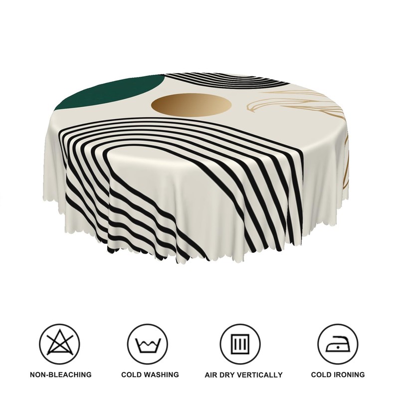 TTQYFNM Green Mid Century Round Tablecloth 48 Inch Boho Arch Sun Gold Leaves Modern Art Table Cloth Abstract Geometric Minimalist Oil Proof Stain Resistant Table Cover for Dining Room Kitchen Patio