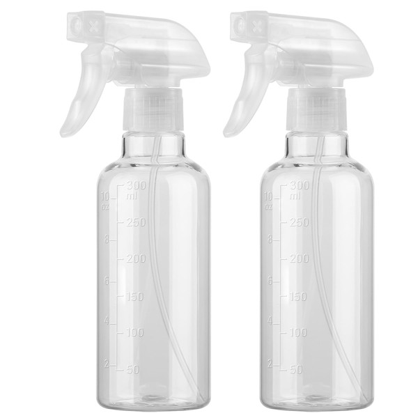 TTTred Plastic Spray Bottles (2 Pack 10 oz), Leakproof Adjustable Fine Mist & Jet Stream Nozzle, Premium BPA-Free Plastic Multi-Purpose for Hair, Plants, Cleaning (2 PACK CLEAR)