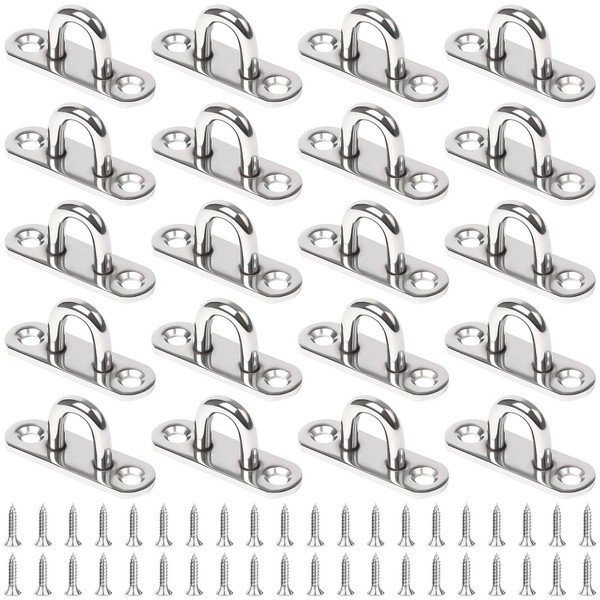 TTYSHIP Pack of 20 Stainless Steel Eye Plates, M5 Eye Plate with 40 Screws, Eye Plate with Eyelet for Hanging Items, Awnings, Deck Plates