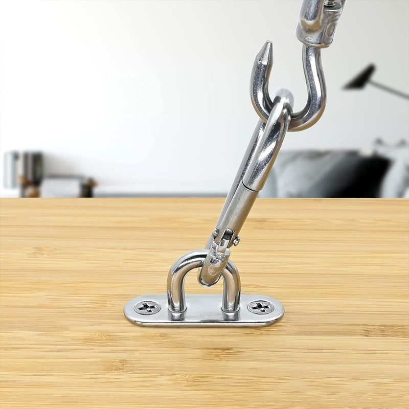 - Easy to install: these stainless steel eye plates are very easy to assemble: simply drill holes in the wall or ceiling, then attach the stainless steel eye plate to the hole and screw it firmly.