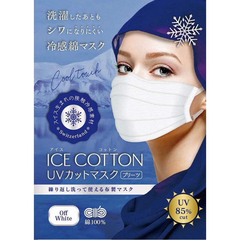 Tu Yon T-90WH Ice Cotton 100% Cotton 2 Piece Washable Cloth Mask, UV Protection Mask, Pleated Type, Skin Friendly, Flat Tape Adjustable, Made in Japan, Made in Japan, Made in Japan, Wrinkle Resistant