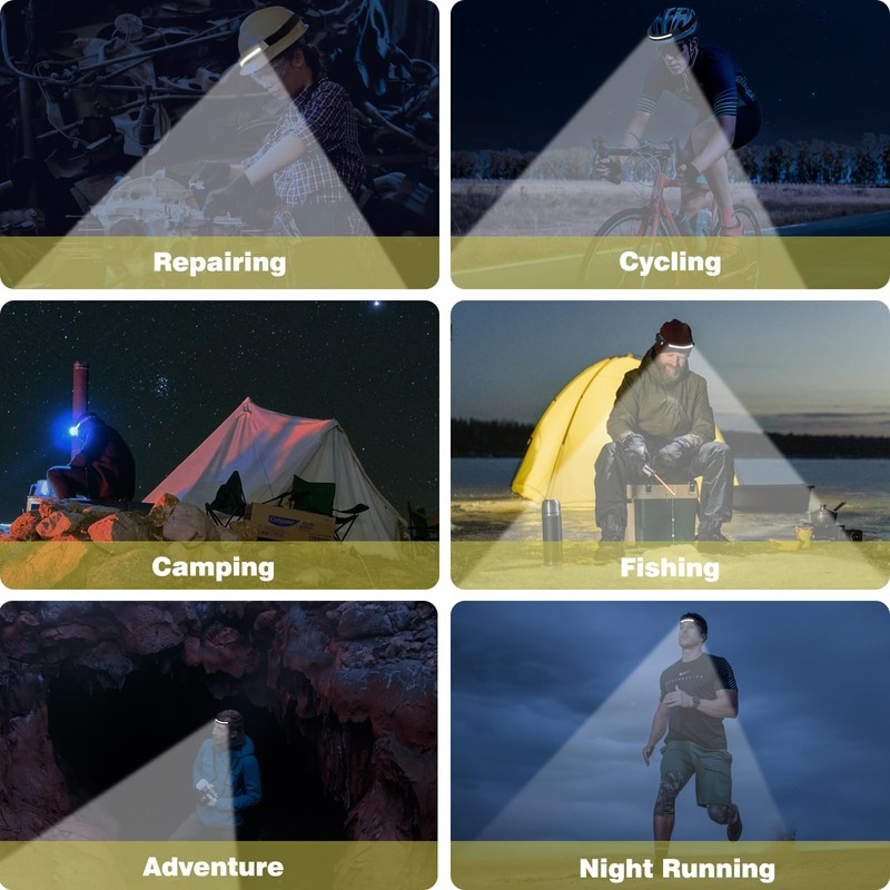 Waterproof & Multipurpose: Headlamps can be used safely on rainy or snowy days, whether you are camping, exploring, hiking, cycling, fishing, climbing, repairing and other outdoor or indoor activities, our headlamps are your good assistants.