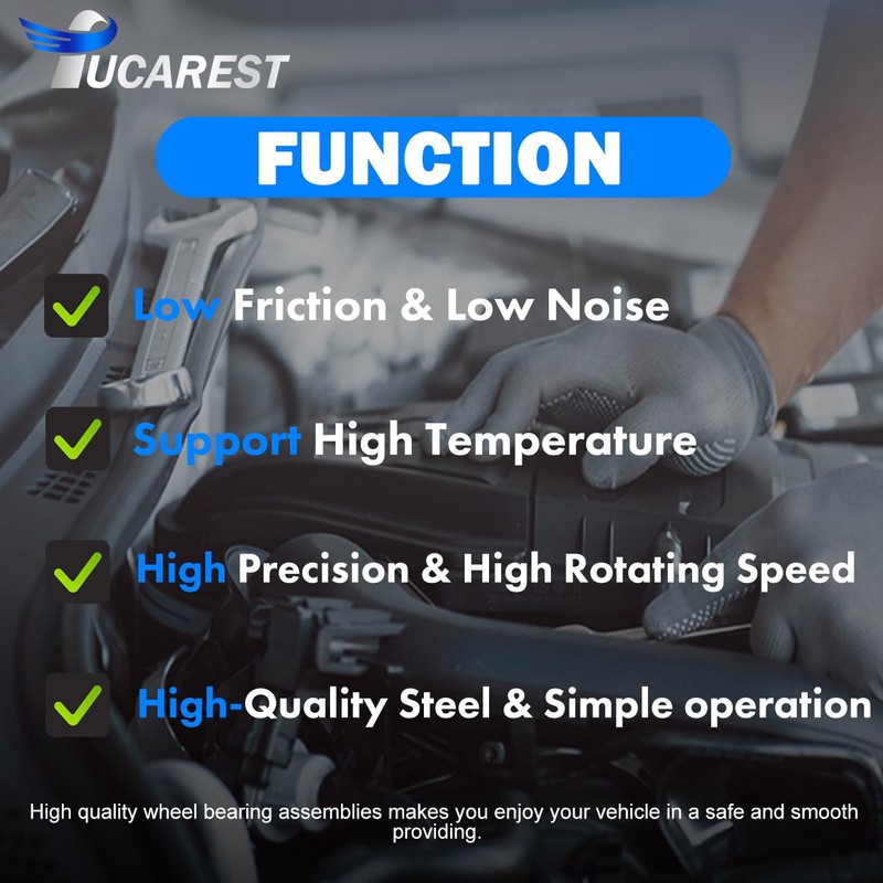 - Function: Wheel hub bearings can fix the tire and support the whole body's gravity, precise guidance for the rotation of the hub. High quality wheel bearing assemblies makes you enjoy your vehicle in a safe and smooth providing.