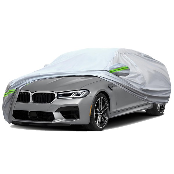 TUCAREST 6-Layers Premium Full Car Cover Hard Shell Zipper Design Waterproof All Weather Weatherproof UV Sun Protection Snow Dust Storm Resistant Outdoor with Straps (Fit for Sedan 188"- 198")