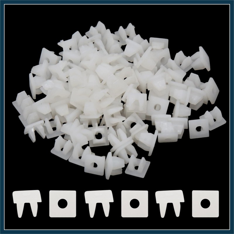 TUCKBOLD 100Pcs White Square Plastic Fastener Retainer Clips for Auto Car 6mm Automotive Parts