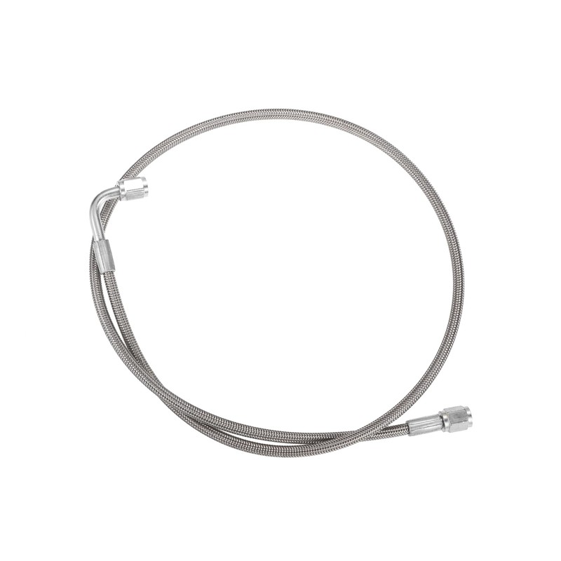 This 3AN stainless steel Braided Tur-bo Oil Feed Line features one straight end and one 90-degree end for easy installation.