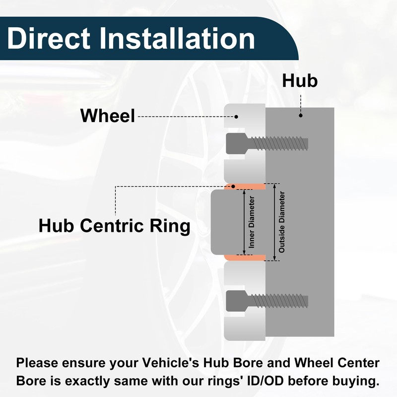 Please ensure your Vehicle Wheel's Center Bore is exactly same with our rings' OD.