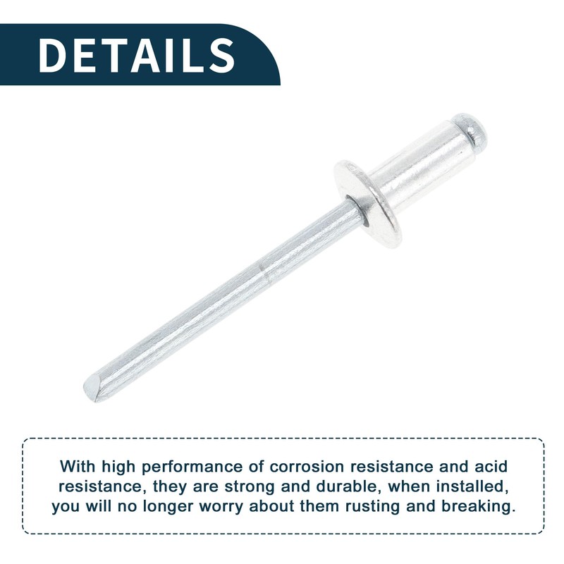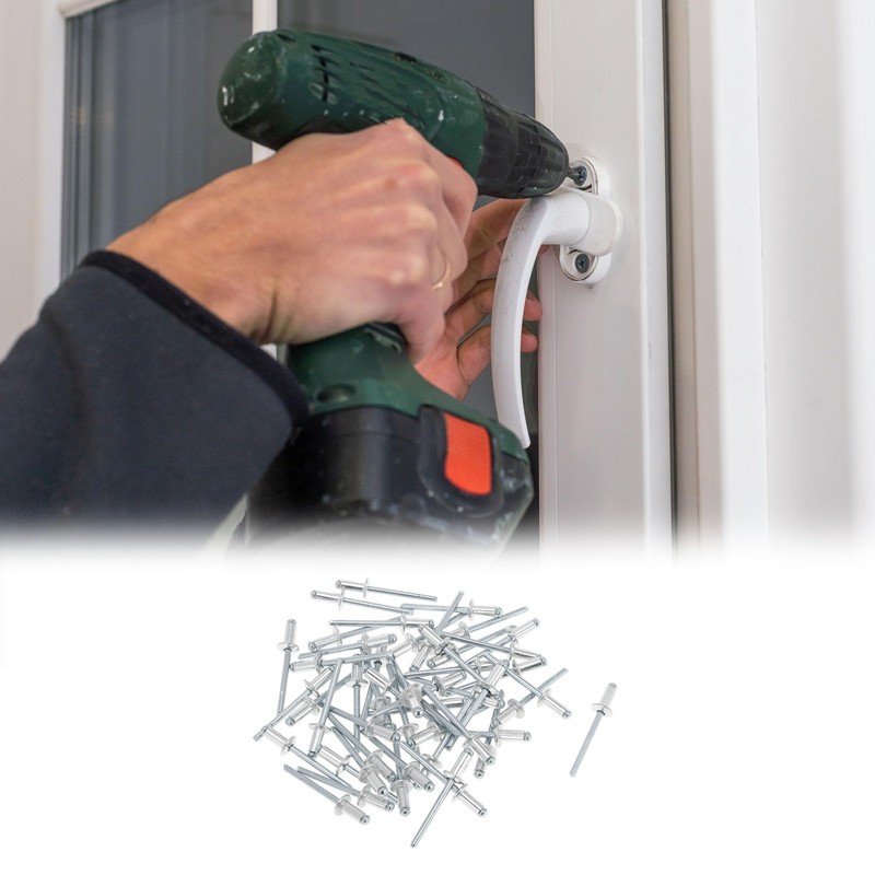 - Easy / Professional Installation:Installation Steps for Blind rivets:1. Blind rivets are fasteners used to connect two materials together without the need for access to both sides. 2. The installation process involves placing the rivet into a pre-drilled hole. 3. Then using a rivet gun to pull the mandrel, expanding the rivet and securing the materials in place.