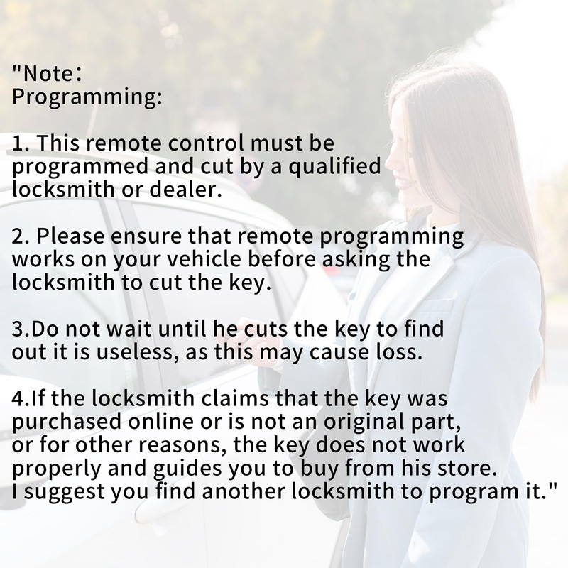 1. Prior to key cutting, confirm remote programming compatibility with your vehicle to prevent issues.