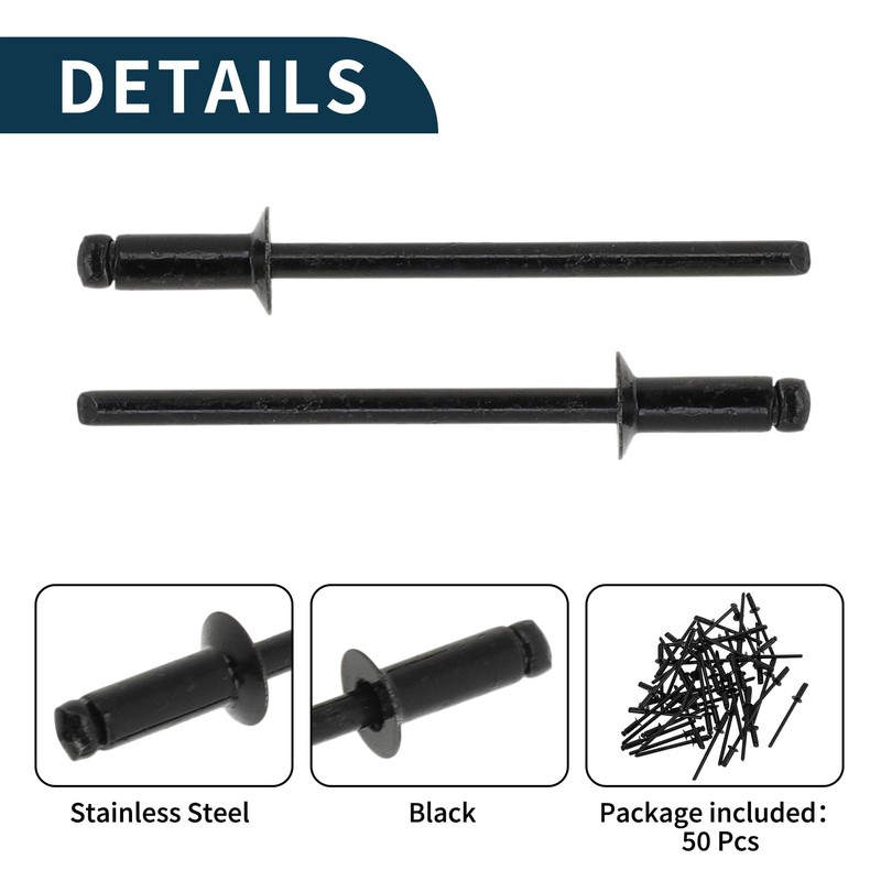 - Easy / Professional Installation:Installation Steps for Blind rivets: 1. Blind rivets are fasteners used to connect two materials together without the need for access to both sides. 2. The installation process involves placing the rivet into a pre-drilled hole, 3. then using a rivet gun to pull the mandrel, expanding the rivet and securing the materials in place.