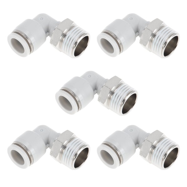 TUCKBOLD Push to Connect Air Fittings 1/2" 90 Degree Air Line Quick Joint Plastic Nickel-plated Copper 1/2"NPT 5 Pcs White Silver Tone