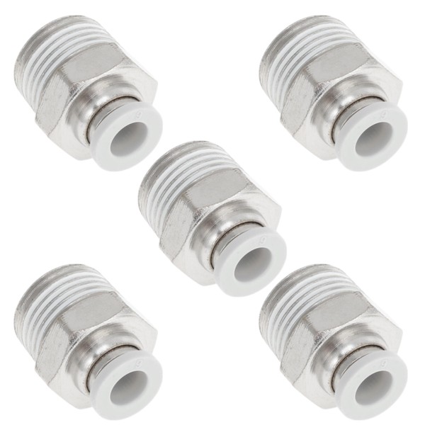 TUCKBOLD Push to Connect Air Fittings 1/4" Male Thread Air Line Quick Connector Plastic Nickel-Plated Copper 3/8" NPT 5 Pcs White Silver Tone