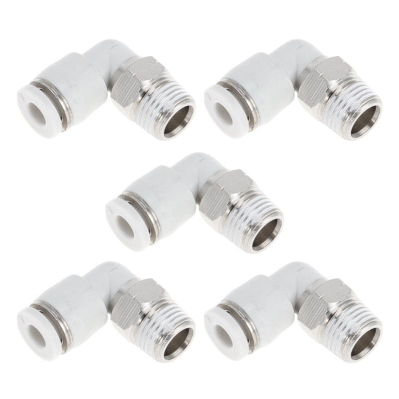 TUCKBOLD Push to Connect Air Fittings 5/32" 90 Degree Air Line Quick Joint Plastic Nickel-plated Copper 1/8"NPT 5 Pcs White Silver Tone