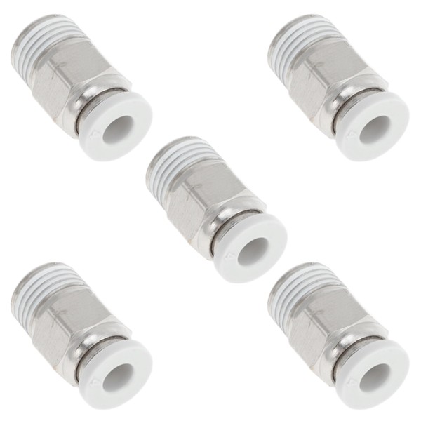 TUCKBOLD Push to Connect Air Fittings 5/32" Male Thread Air Line Quick Connector Plastic Nickel-Plated Copper 1/8" NPT 5 Pcs White Silver Tone