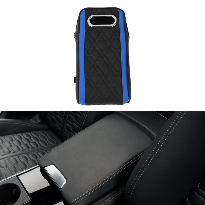 TUCKBOLD Universal Center Console Cover Car Armrest Cover with Tissue Box Middle Console Cover Lid for Most Vehicle SUV Car Sedan 13.39"x6.69"x2.36" Black Blue Nappa Leather Sponge