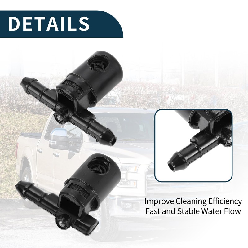 - Long lasting: The windshield washer nozzle is made of plastic, which is strong, sturdy. The front windshield nozzle wiper spray is designed to spray away during automated car washes and snow and ice removal. Quick spraying windshield and restoration of clear view, contributes to driving safety.