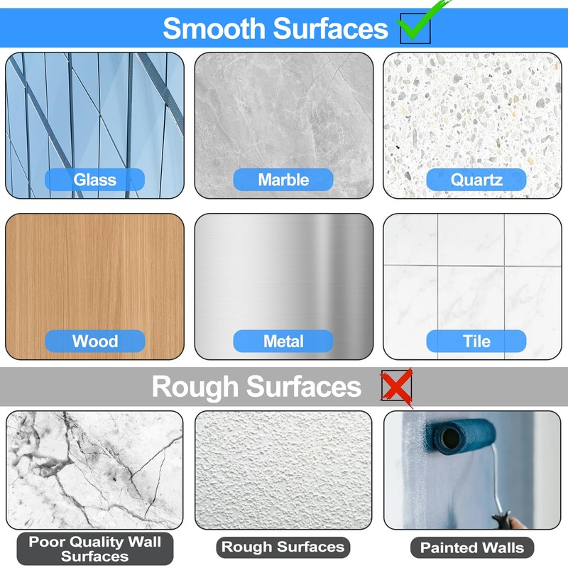 - Easy Installation: Simply tear off the protective film and stick the shower caddy sticker to the desired wall surface. It is recommended to allow them to dry for at least 24 hours before use.However, please remember not to apply them to painted walls or wallpaper, as they may cause damage when removed. Instead, they should be affixed to smooth surfaces like tile, glass, smooth wood, metal, or flat marble.