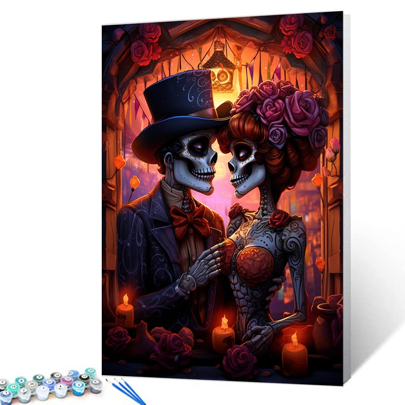 Tucocoo Day of The Dead Decor Paint by Numbers Skeleton Couple DIY Painting by Number on Canvas with Brushes and Acrylic Pigment Easy to Paint for Home Decor Christian Gift Without Frame 16 x 20inch