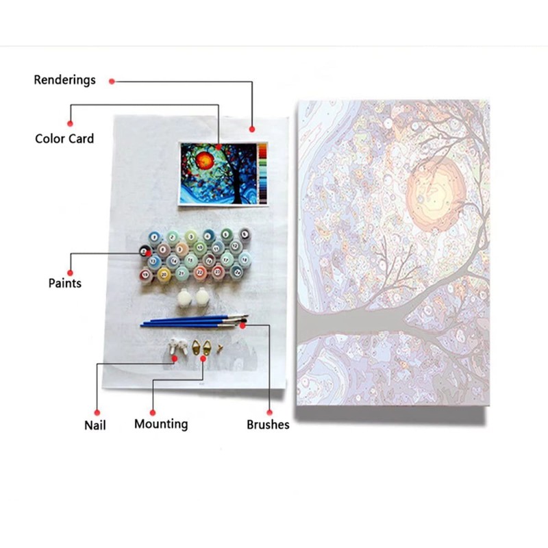 - ✔ SELF EXPLANATORY - Tucocoo The DIY frame has preprinted numbers that corresponds to the paint set. Each color paint is labelled with a number. Simply follow the numbers.Paint by number kit on canvas 16x20inch(40x50cm).