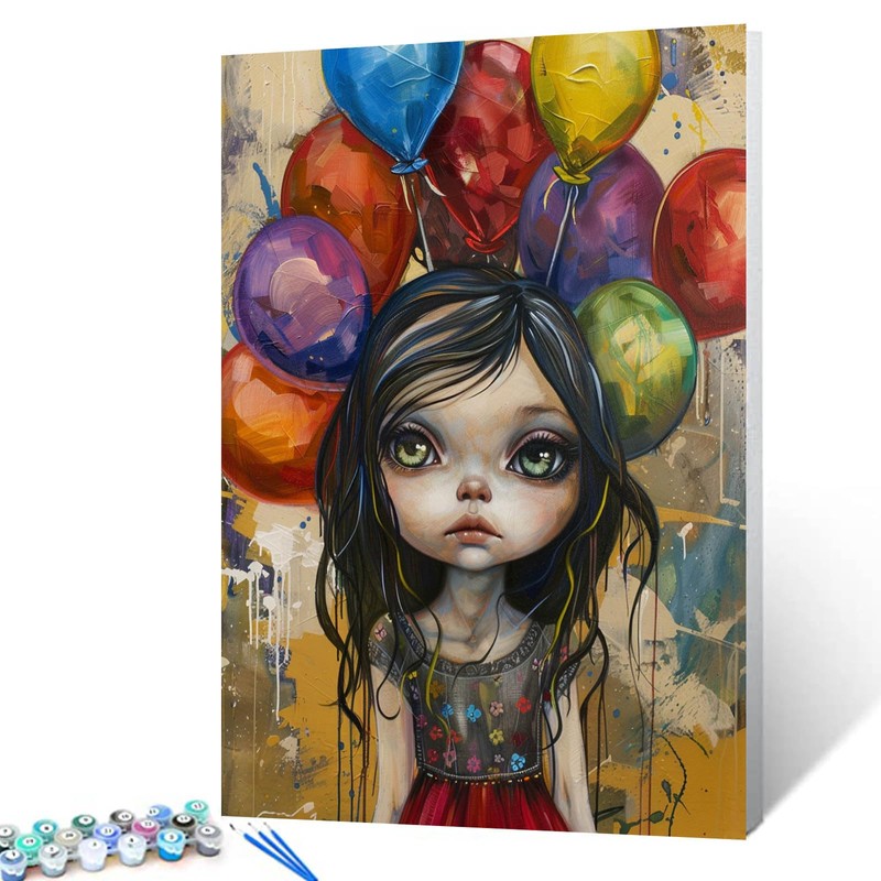 Tucocoo Little Girl and Ballons Paint by Numbers Kits with Brushes and Acrylic Pigment on Canvas Painting for Adults, Colourful Abstract Picture for Home Wall Decor Gifts 16''x20'' (DIY Framed)
