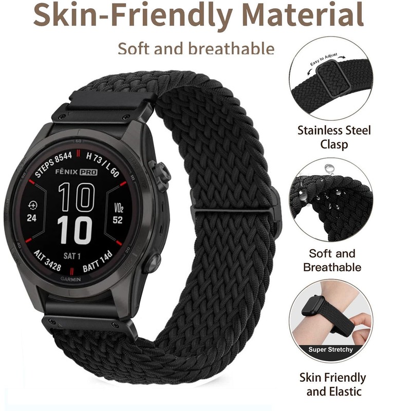 - Elastic braided nylon material: the other Garmin Fenix 7S watch strap is made of polyester yarn, which is braided around silicone thread, each braided solo loop band has a soft, stretchy design. The band provides flexible, skin-friendly without irritation, breathable, sweat-resistant, durable, lightweight and washable.