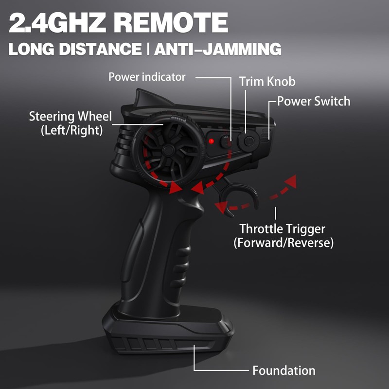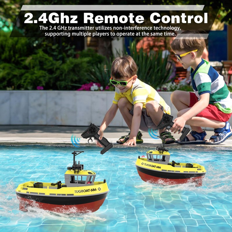 - Beginner-Friendly: The remote control adopts advanced 2.4G technology, and multiple RC boats will not interfere with each other when playing at the same time. The pistol-style remote controller is easy to operate, allowing you to effortlessly control forward, left, right, and reverse movements.