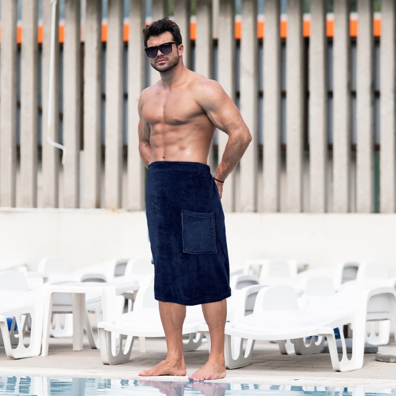 Tudomro 2 Pieces Men's Body Wrap Towel Adjustable Sauna Towels Spa Wrap with Pocket After Shower Wrap Terry Bath Towels Bath Wrap for Men Shower Bath Dorm Room Gym(X-Large,Black, Navy Blue)