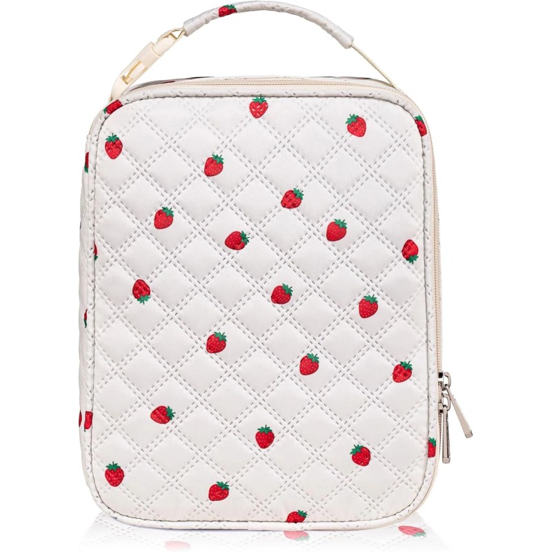 - 🍓Mom-Trusted, Kid-Adored Design: Finally, a lunch bag that doesn't scream 'babyish'! Our embossed fruit patterns(strawberry/pineapple/banana) give just enough princess vibes for school, while the sleek quilted fabric feels luxe enough for your work meetings. Made with non-toxic PEVA lining – because we know you'd never compromise on safety
