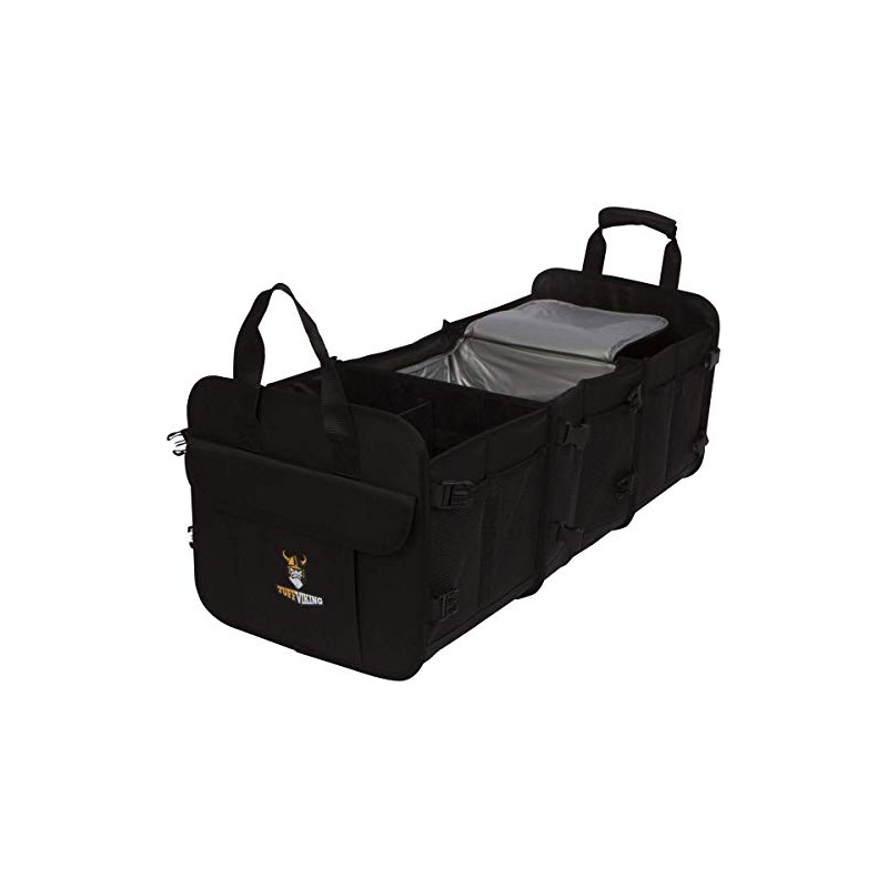 Tuff Viking Convertible Large Trunk Organizer with Built-in Insulated Leakproof Cooler Bag - 3 Compartments, Easy to Clean (5-in-1 w/cover, Black)…