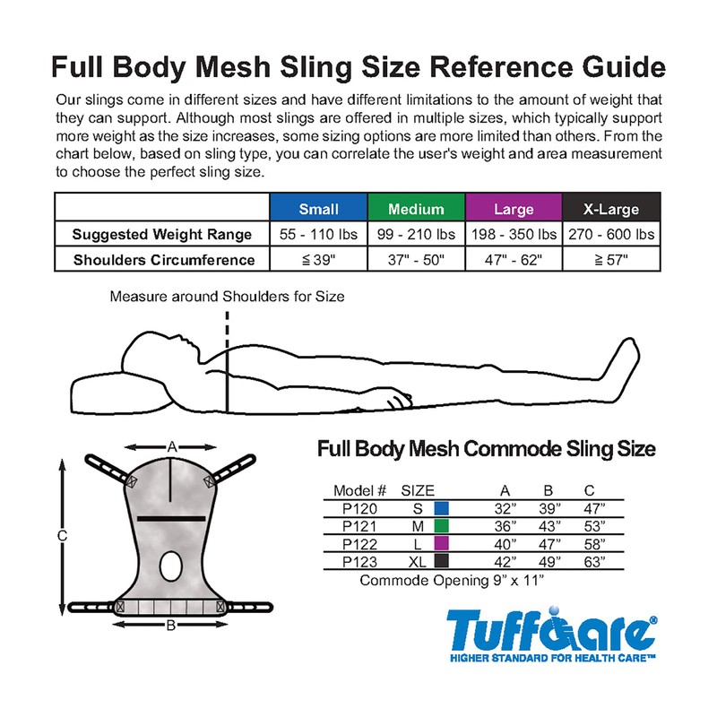 Tuffcare Full Body Shower/Bath Commode Sling Compatible with Hoyer, Invacare, McKesson, Drive, Lumex, Medline, Joerns and Other Patient Lifts, Oversize Fit Mesh Polyester Slings (X-Large)