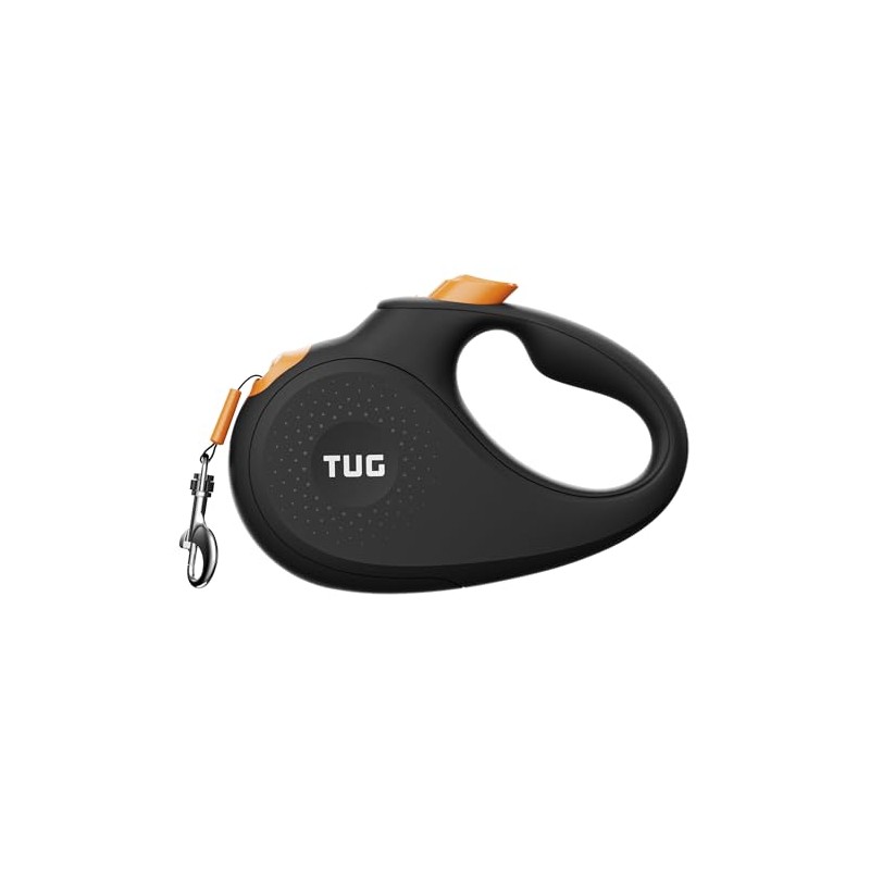 TUG 360° Tangle-Free Retractable Dog Leash | 16 ft Strong Nylon Tape (Small, Black/Orange)