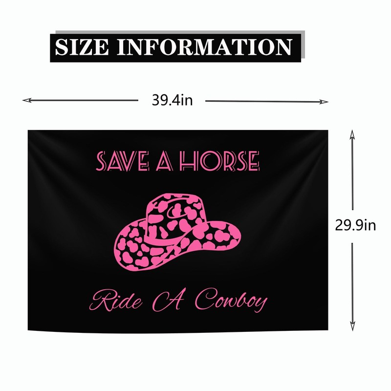 - Superior Quality Save A Horse Tapestry: Made from polyester fiber; This black pink save a horse ride a cowboy tapestry has classic color and unique design, which is fadeless; Good wrinkle resistance and shape retention, high strength and elastic recovery; This cowboy tapestry wall hanging is sturdy, wrinkle-free, non-sticky