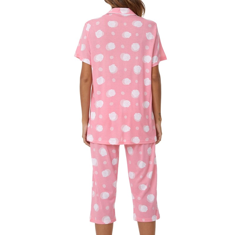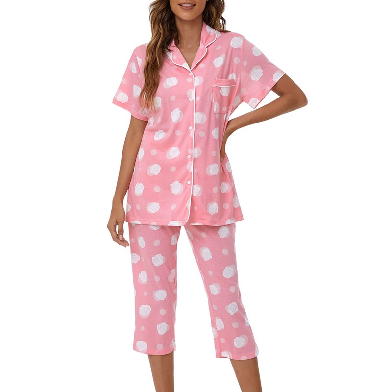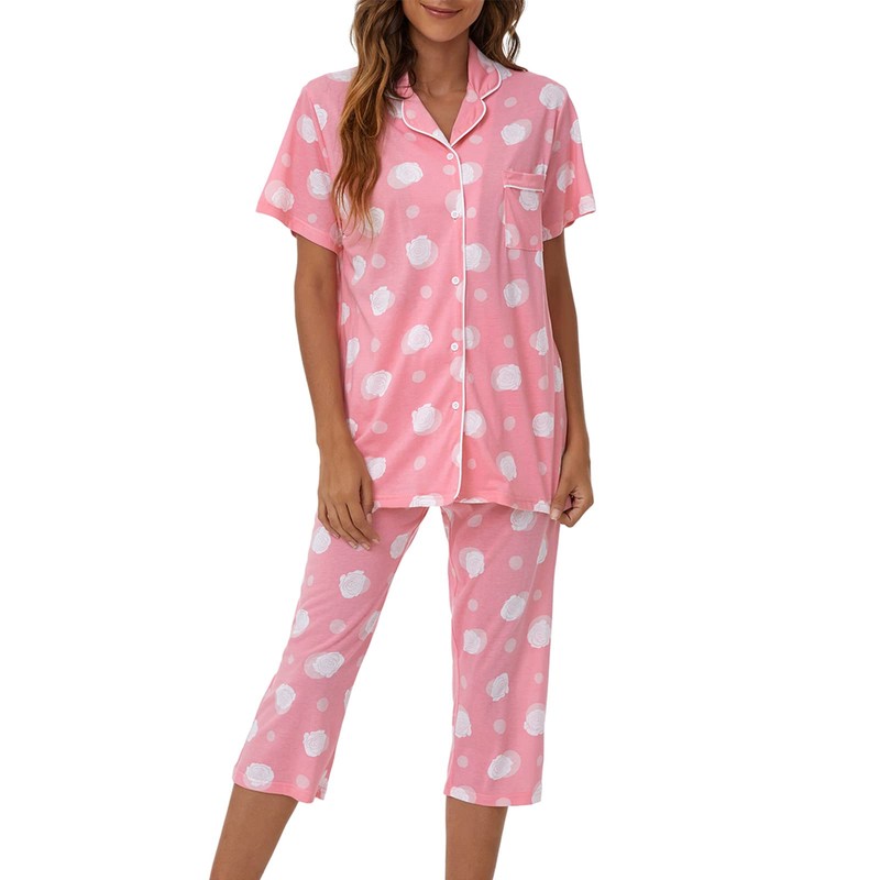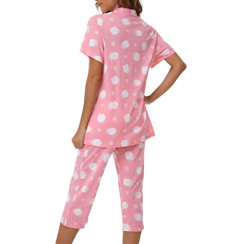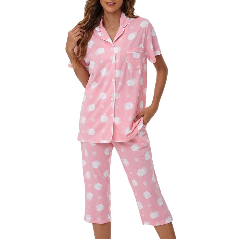 Tugege Capri Pajamas Set Womens Button Down Short Sleeve Lounge Sets Sleepwear Notch Collar Top & Capri 2 Piece PJ Sets Pink Rose