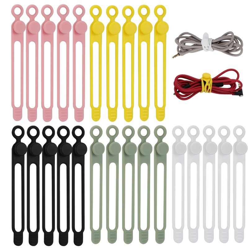 TUGEUNYU 25Pcs Silicone cable ties reusable cable management ties USB cable ties multi-purpose elastic cable ties for bundling and securing cables(Mixed colors)